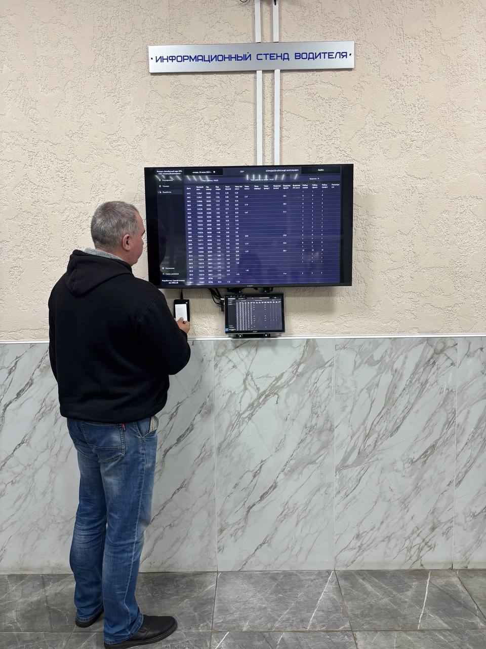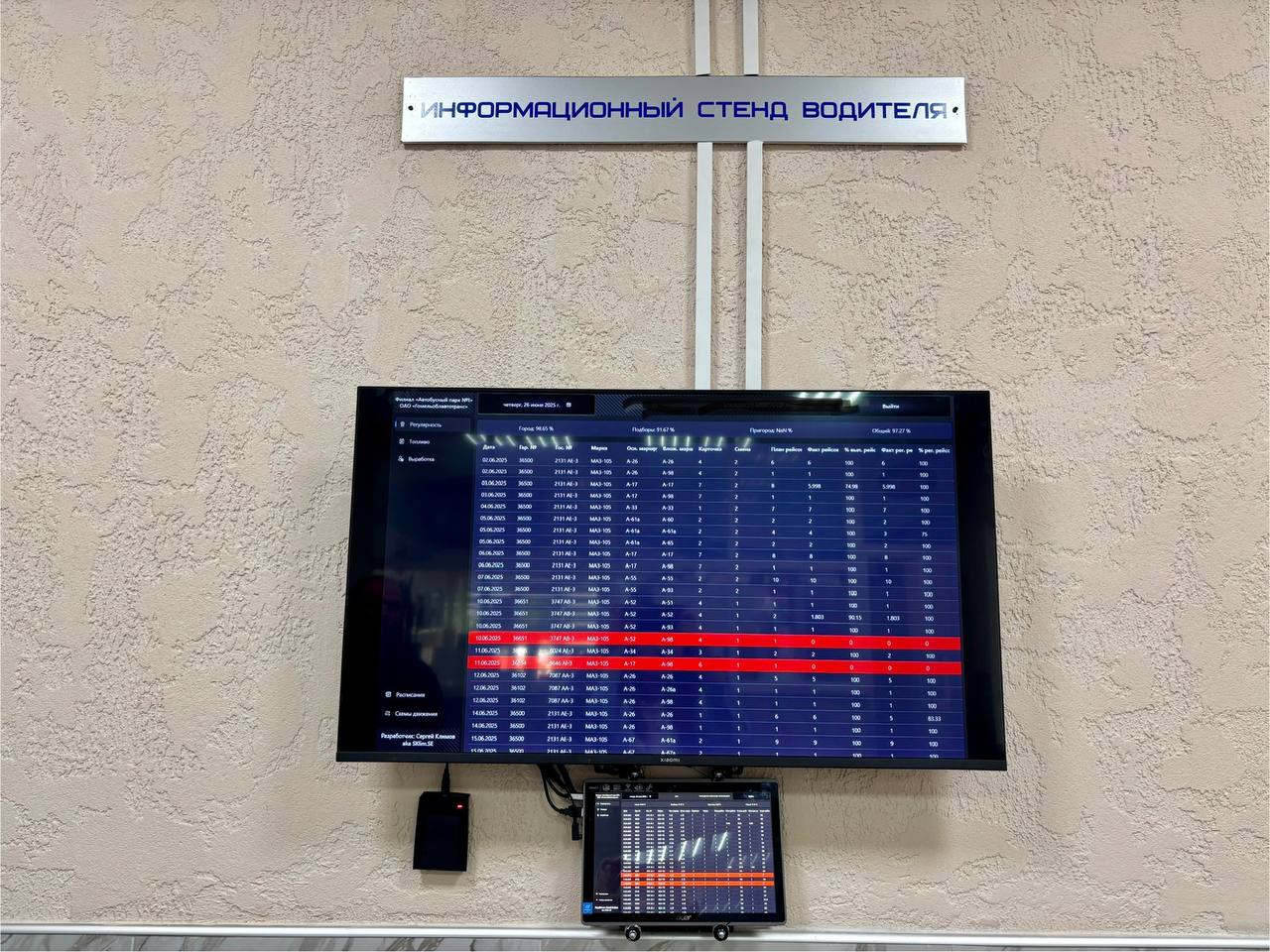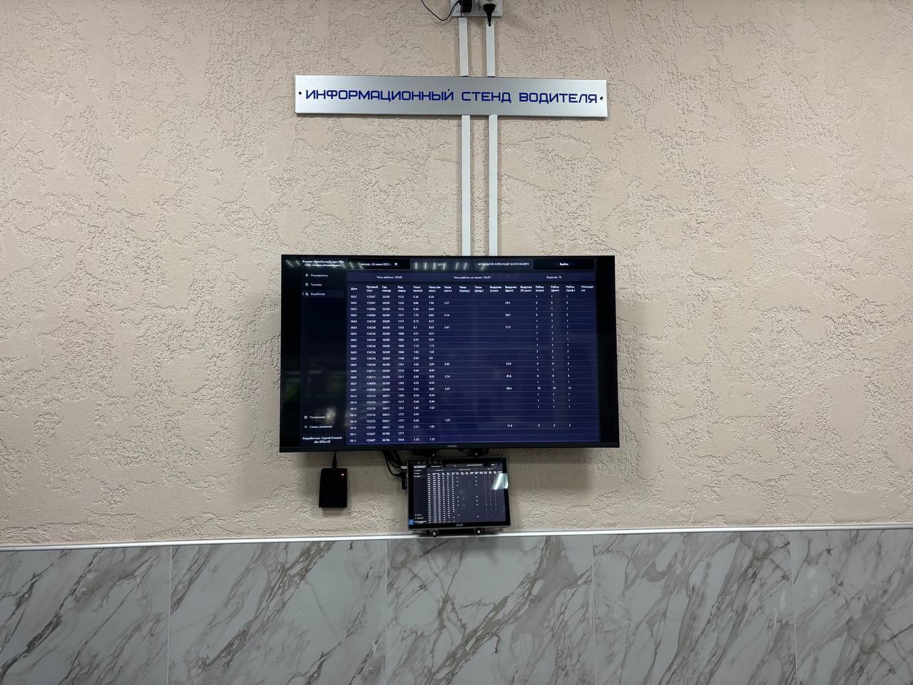 В филиале «Автобусный парк №1» внедрён новый информационный стенд для водителей, разработанный специалистами парка. Эта инновационная система позволяет водителям получать доступ к важной информации с помощью электронного пропуска.