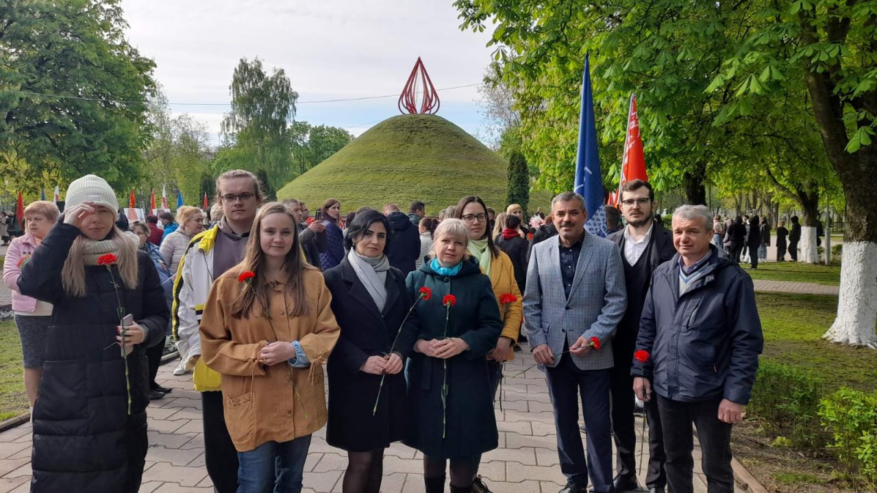 Митинг в честь Дня Победы у Кургана Славы в Советском районе г. Гомель и возложение цветов.