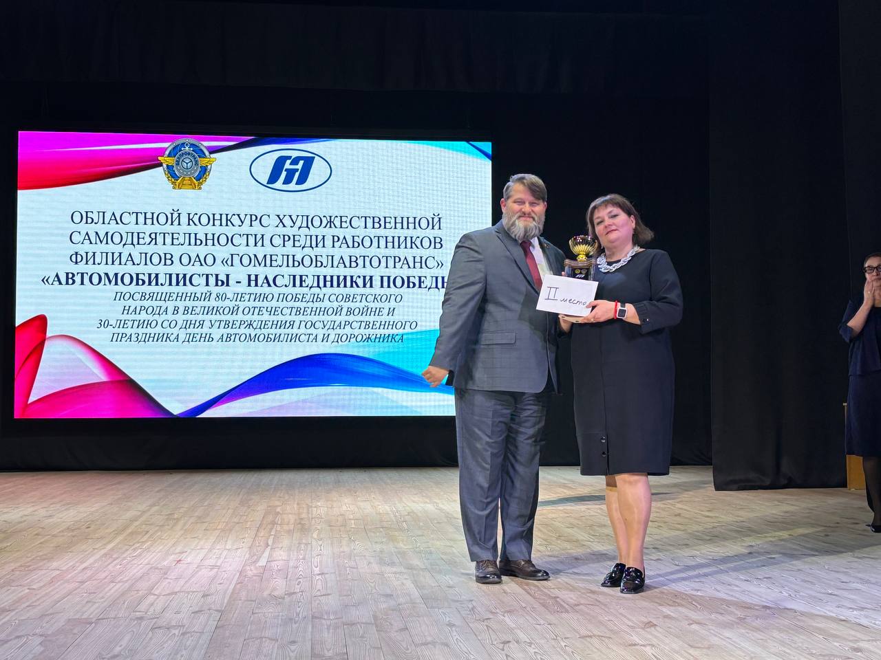 Филиал «Автобусный парк №1» принял участие в областном конкурсе художественной самодеятельности среди работников филиалов ОАО «Гомельоблавтотранс» «АВТОМОБИЛИСТЫ-НАСЛЕДНИКИ ПОБЕДЫ», посвященному 80-летию Победы советского народа в ВЕЛИКОЙ ОТЕЧЕСТВЕННОЙ ВОЙНЕ и 30-ЛЕТИЮ со дня утверждения государственного праздника ДЕНЬ АВТОМОБИЛИСТА И ДОРОЖНИКА.