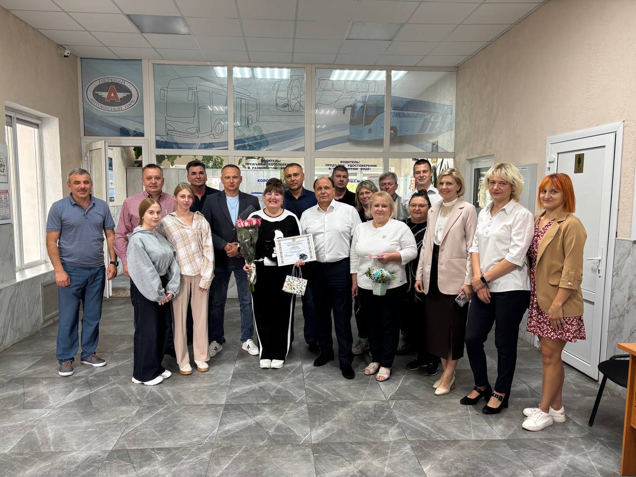 А также наш коллектив провожает на заслуженный отдых ЦЫБУЛЬСКУЮ Светлану Михайловну, диспетчера автомобильного транспорта , отработавшую на предприятии 20 лет.