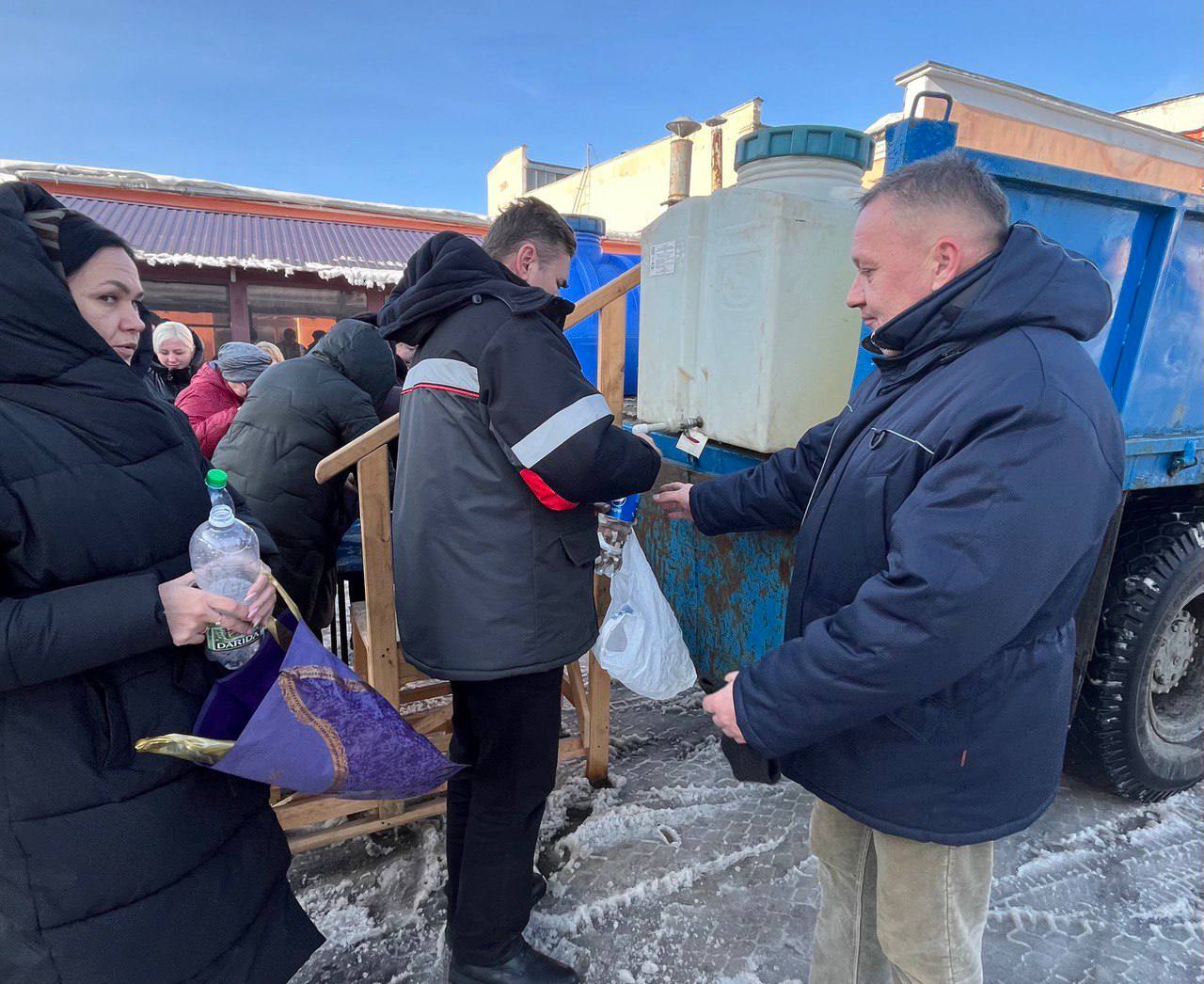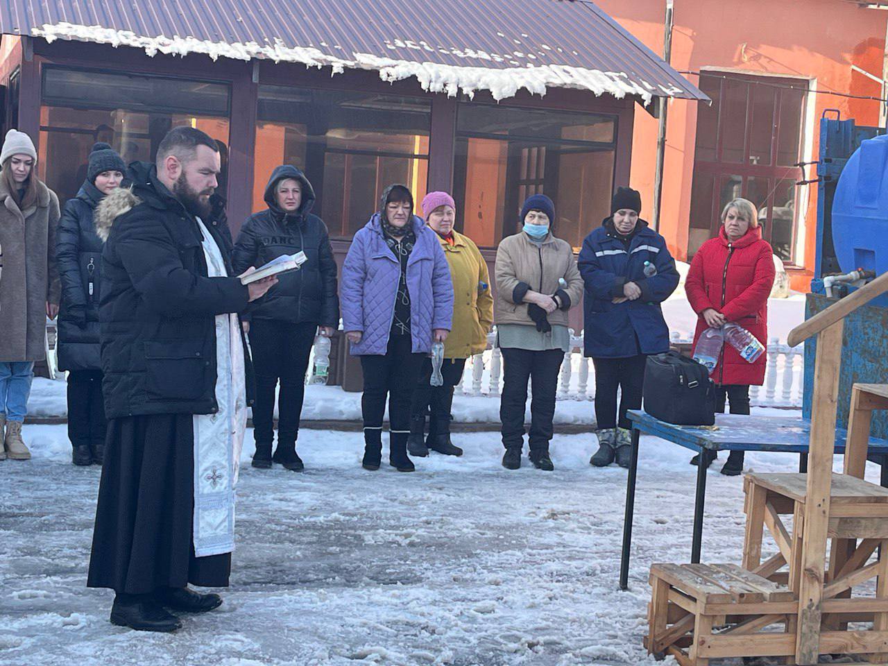 Для освящения воды ПЕРВЫЙ парк посетил отец Алексей.