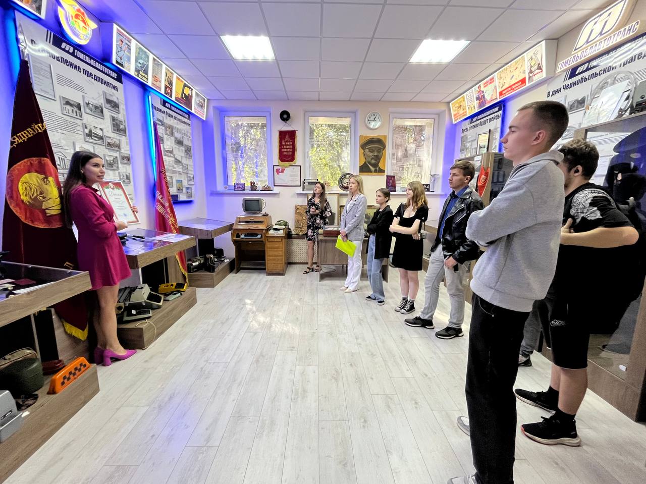 Знакомство молодых специалистов с предприятием началось с посещения музея ОАО «Гомельоблавтотранс». Ребята, недавно пришедшие на работу в парк, смогли воочию проследить весь путь становления и развития автотранспорта в г.Гомеле — от первых автобусов до современных моделей, которые сегодня колесят по дорогам города и за его пределами. Молодые специалисты увидели, как менялась техника, как росло предприятие, и самое главное — какой неоценимый вклад в развитие города и области вносит их работа.